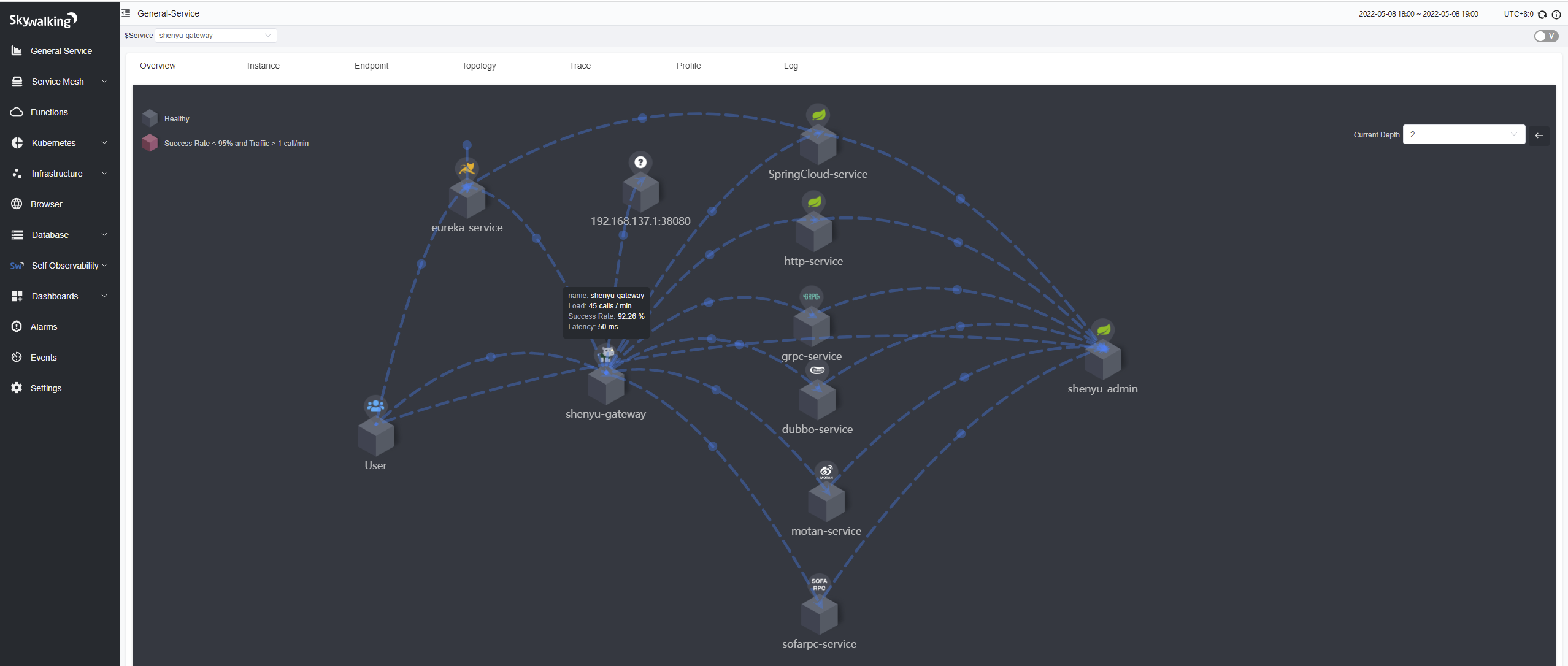 The above explains the principle of SkyWalking ShenYu plug-in implementation, the following deployment application to see the effect. SkyWalking powerful, in addition to the link tracking requires the development of plug-ins, other powerful features out of the box. Here only describe the link tracking and application performance analysis part, if you want to experience the power of SkyWalking features, please refer to the SkyWalking official documentation.
