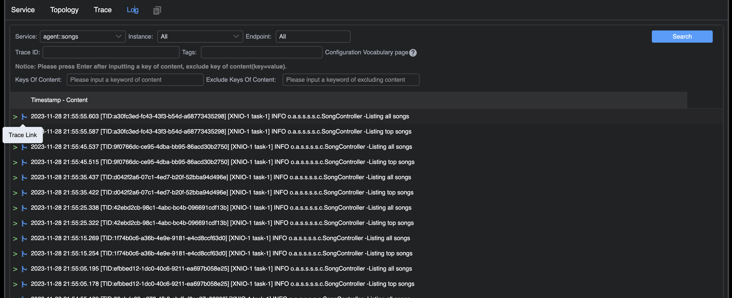 - Fix Log associate with Trace.