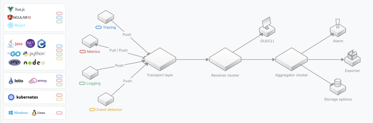 - 服务端 主要关注 角色和职责、模块和配置、数据接收的机制、指标构建的机制、指标聚合的机制及指标存储的机制。