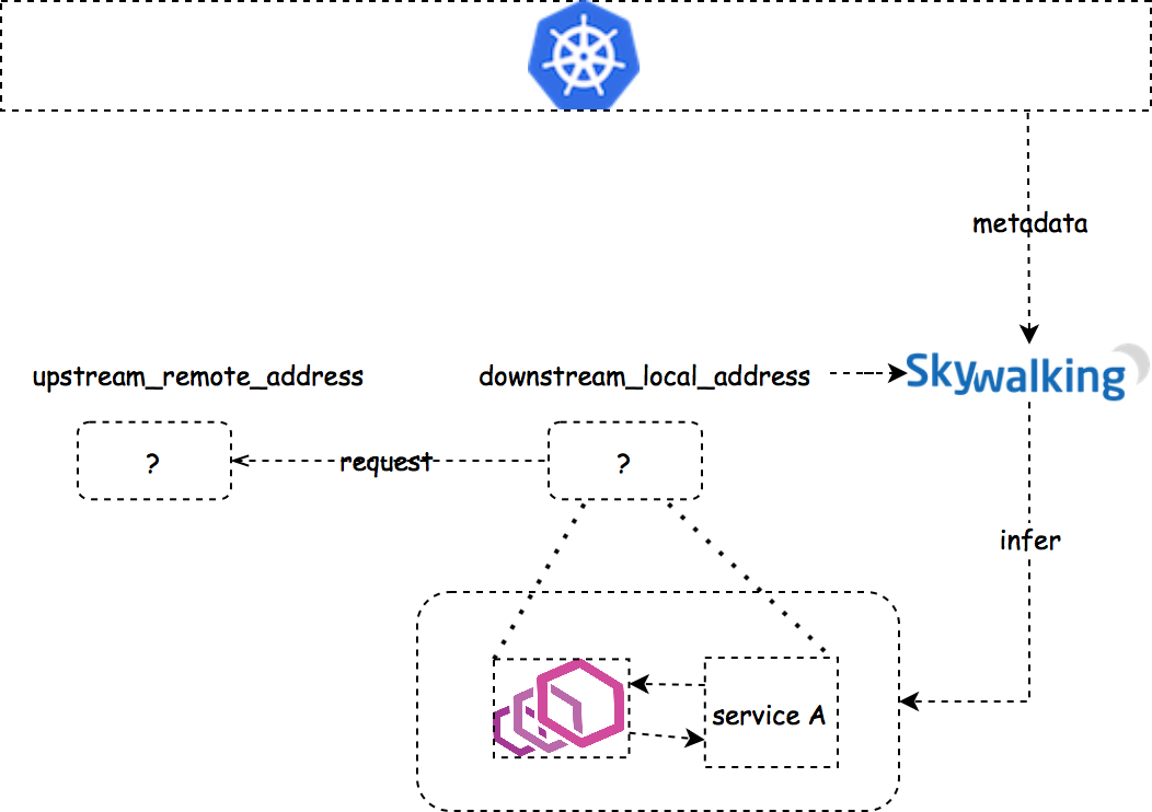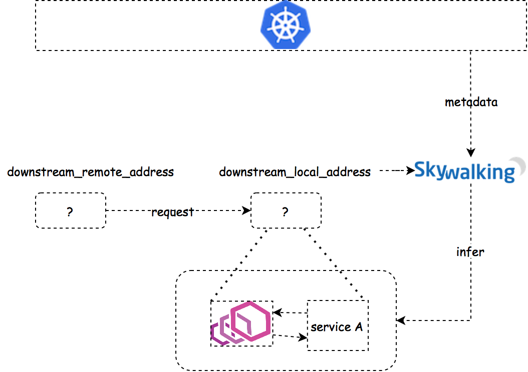 downstream_remote_address是否能够找到对应的 Kubernetes 服务。如果在此 IP(和端口)中有一个服务(例如服务 B)正在运行,那我们就会建立起服务对服务的关系(即服务 B → 服务 A),帮助建立拓扑。再配合访问日志中的